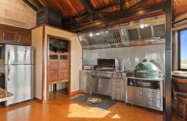 Relax and recharge with access to our refreshing saltwater pool, soothing hot tub, scenic putting green, or our unique air-conditioned indoor/outdoor kitchen, complete with stunning panoramic views of the ranch.